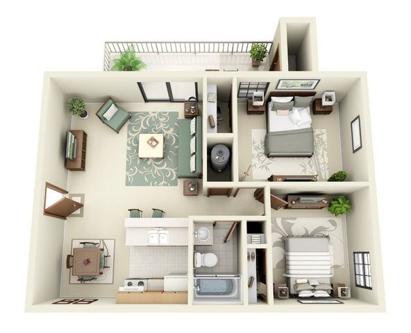 2 Dormitorios, 1 Baño, 840 pies²Disponible AhoraGalería del Modelo