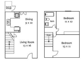 2 BR/1BA Townhome