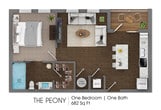 Modelo de apartamento: Peony (Income Restricted)Llame para Precios1 Dormitorio, 1 Baño, 682 sq ftNo DisponiblePeony (Income Restricted) - Plano 1 Camellia