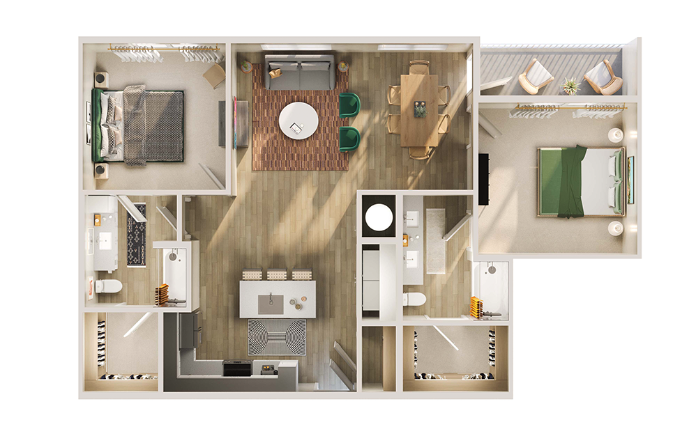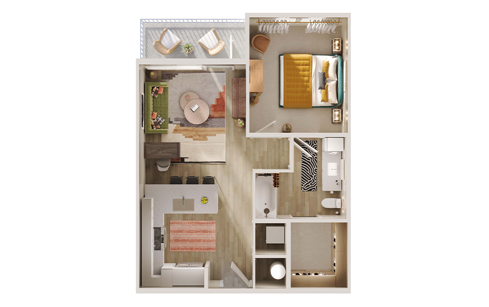 1 Dormitorio, 1 Baño, 821 pies²Disponible AhoraGalería del Modelo