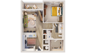 Modelo de apartamento: A2$1,5291 Dormitorio, 1 Baño, 721 sq ftDisponible Ahora![]()
