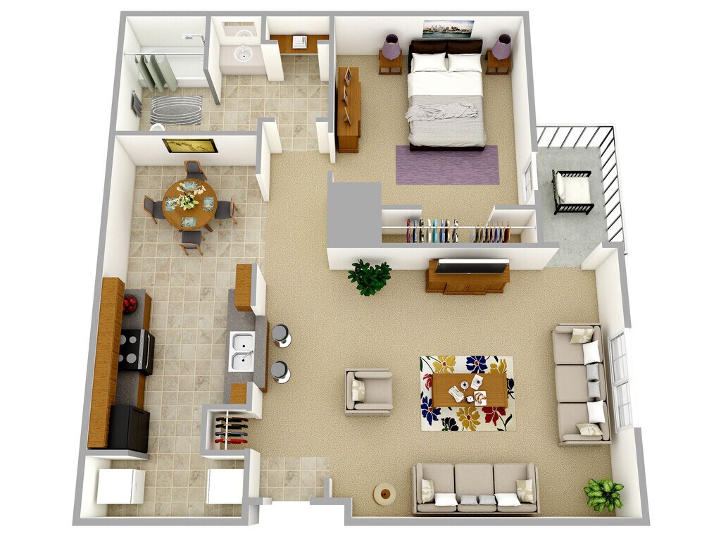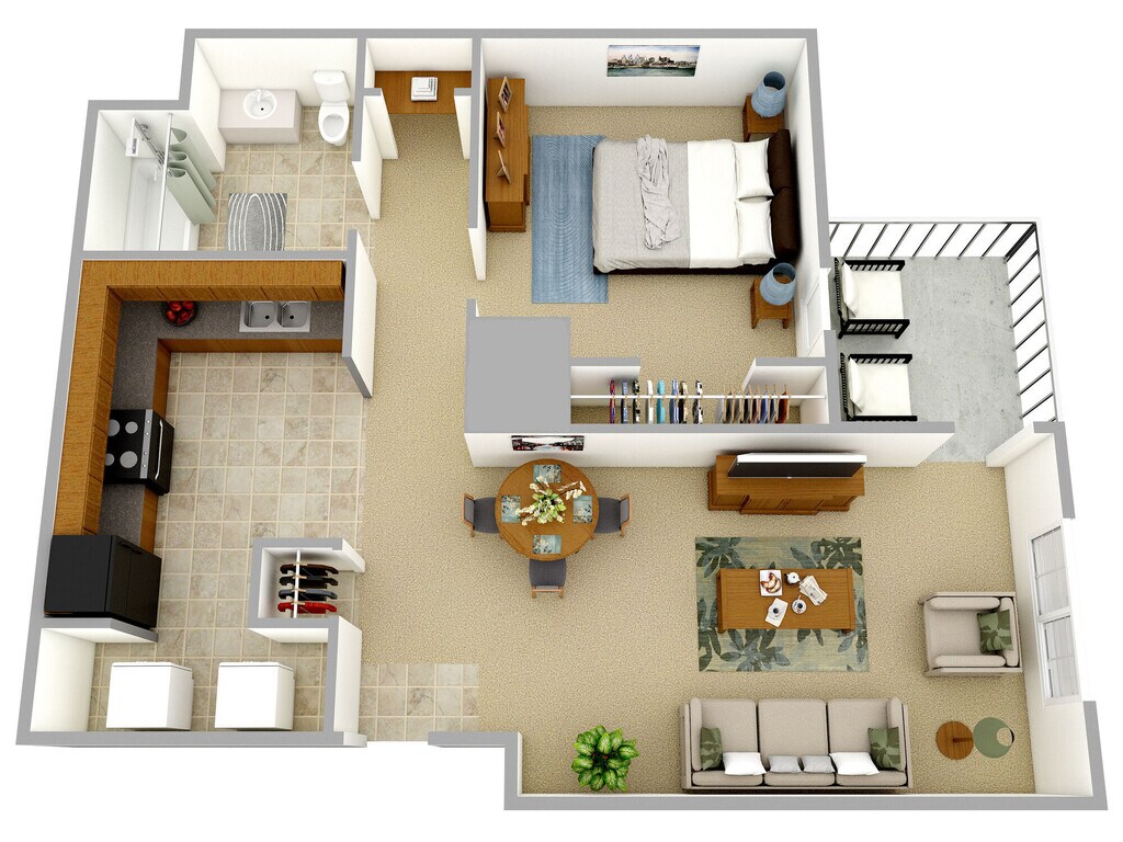 1 Dormitorio, 1 Baño, 718 pies²Disponible AhoraGalería del Modelo