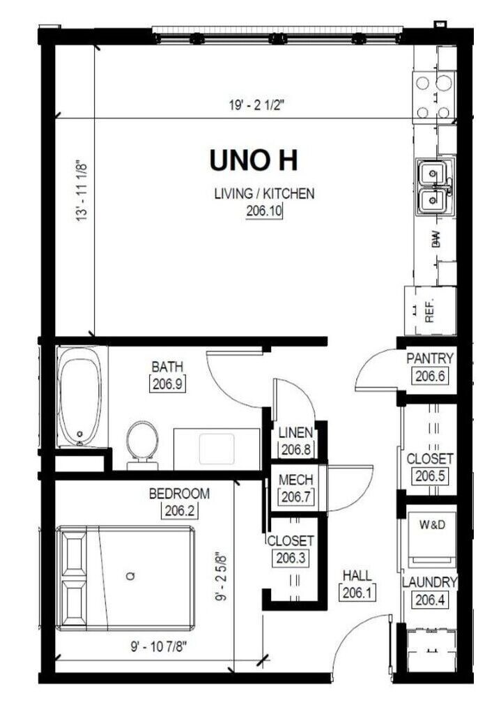 Modelo de apartamento: Uno H1 Dormitorio, 1 Baño, 568 sq ftNo DisponibleUno H - Plano 1 Uno S