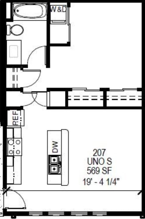Modelo de apartamento: Uno S1 Dormitorio, 1 Baño, 569 sq ftNo DisponibleUno S - Plano 1 Plano: Uno