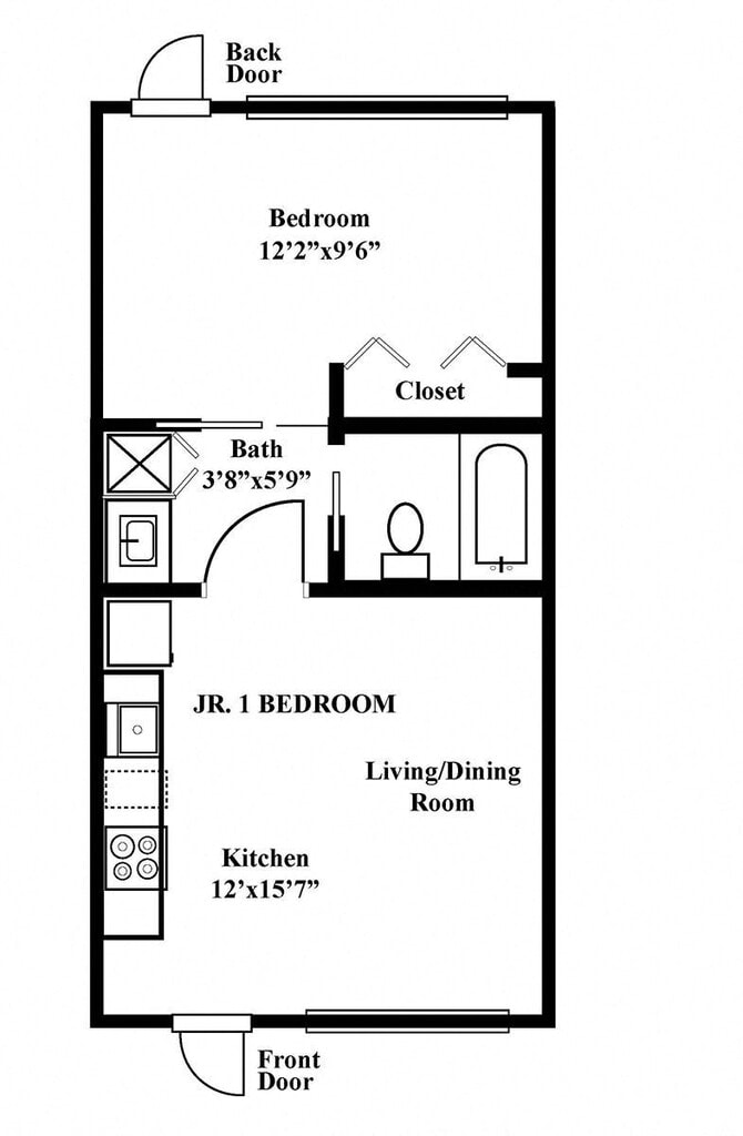 Unidad: 09 - Imagen 1 Unidad de apartamento: 04Modelo de apartamento: 1 Bed 1 Bath1 Dormitorio, 1 Baño, 500 sq ftDisponible Ahora![]()