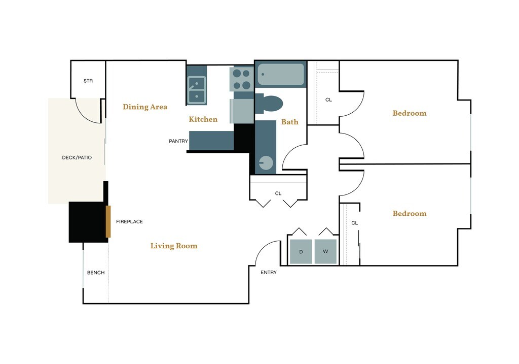 2 Dormitorios, 1 Baño, 808 pies²Galería del Modelo