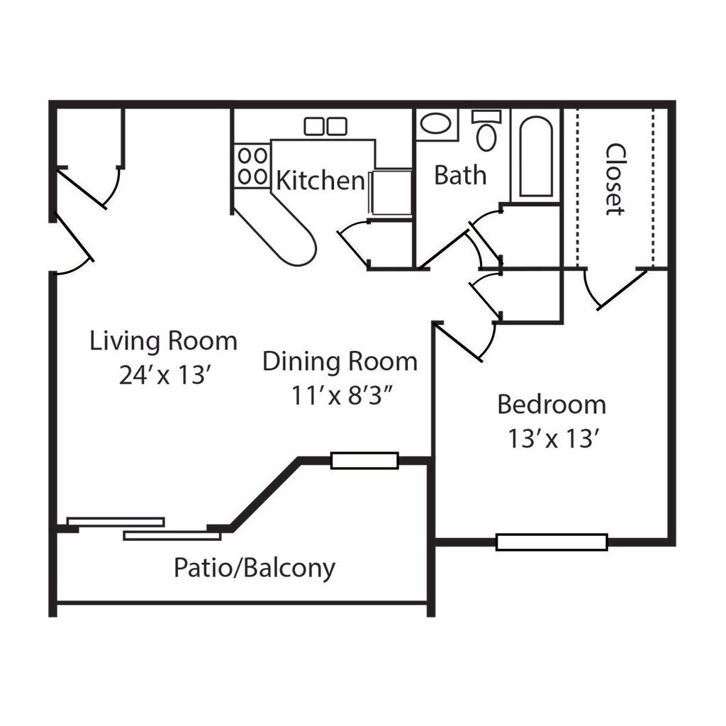 Modelo de apartamento: 1 Bedroom, 1 Bath - Sleepy Hollow 600SqFt$8001 Dormitorio, 1 Baño, 600 sq ftNo Disponible![]()