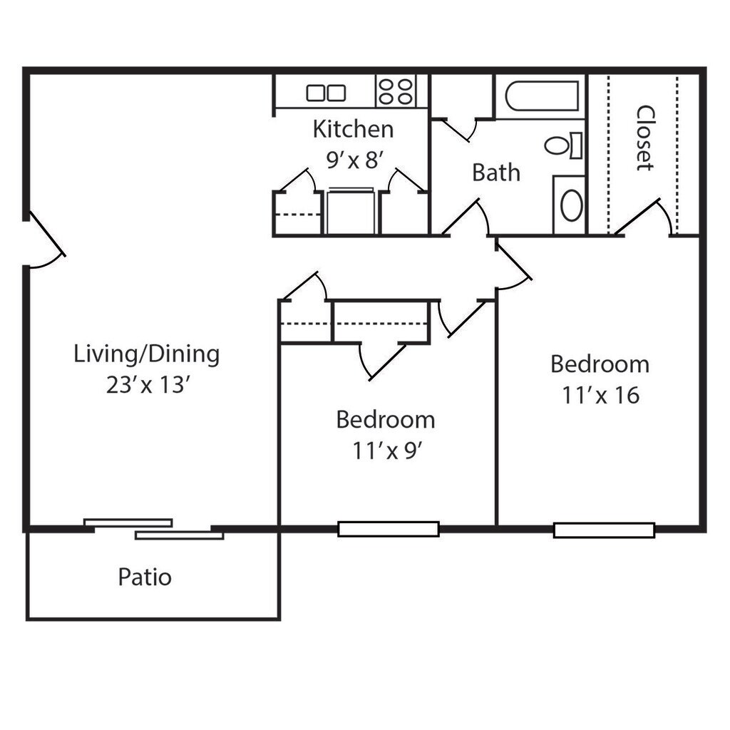 Modelo de apartamento: 2 Bedroom, 1 Bath - Sleepy Hollow 700SqFt$8902 Dormitorios, 1 Baño, 700 sq ftNo Disponible![]()