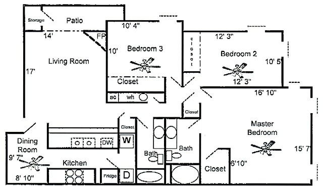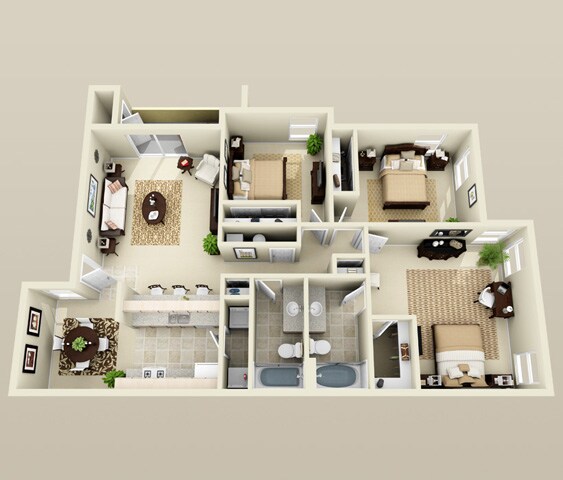 3 Beds, 2 baths - Plano 1 ![]()