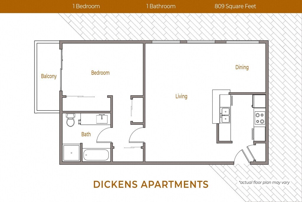 1 Bedroom, 1 Bath - Plano 1 Unidad de apartamento: 1Modelo de apartamento: 1 Bedroom, 1 Bath1 Dormitorio, 1 Baño, 805 sq ftDisponible Ahora2 Dormitorios