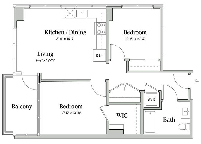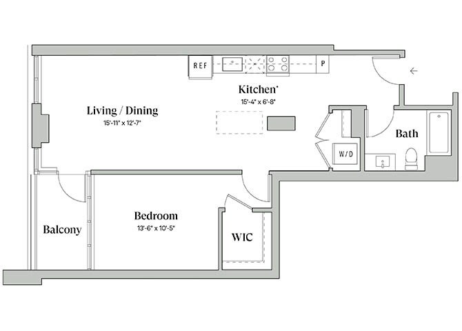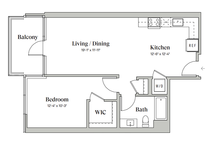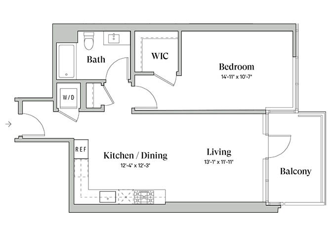 Estudio, 1 Baño, 584 pies²Disponible AhoraGalería del Modelo