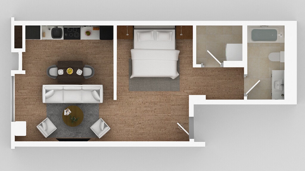 1 Dormitorio, 1 Baño, 472-728 pies²Disponible AhoraGalería del Modelo