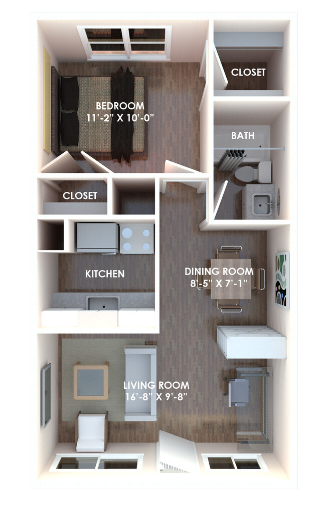 1BR/1BA Full Unit - Plano 7 2 Dormitorios