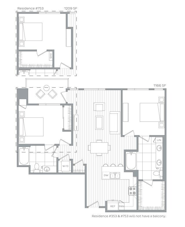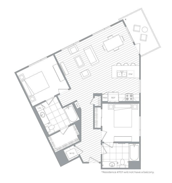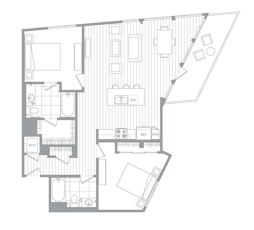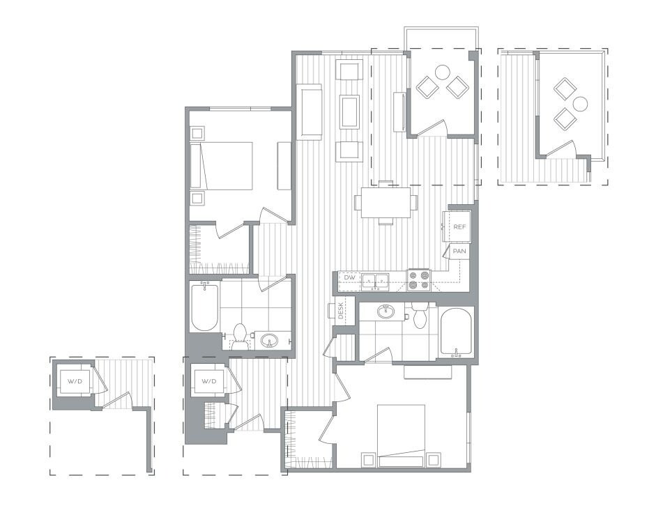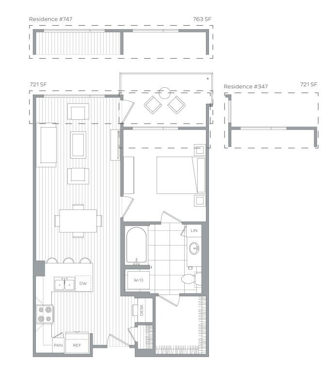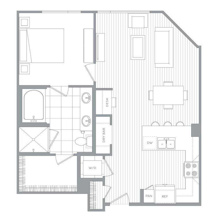 1 Dormitorio, 1 Baño, 721-763 pies²Galería del Modelo