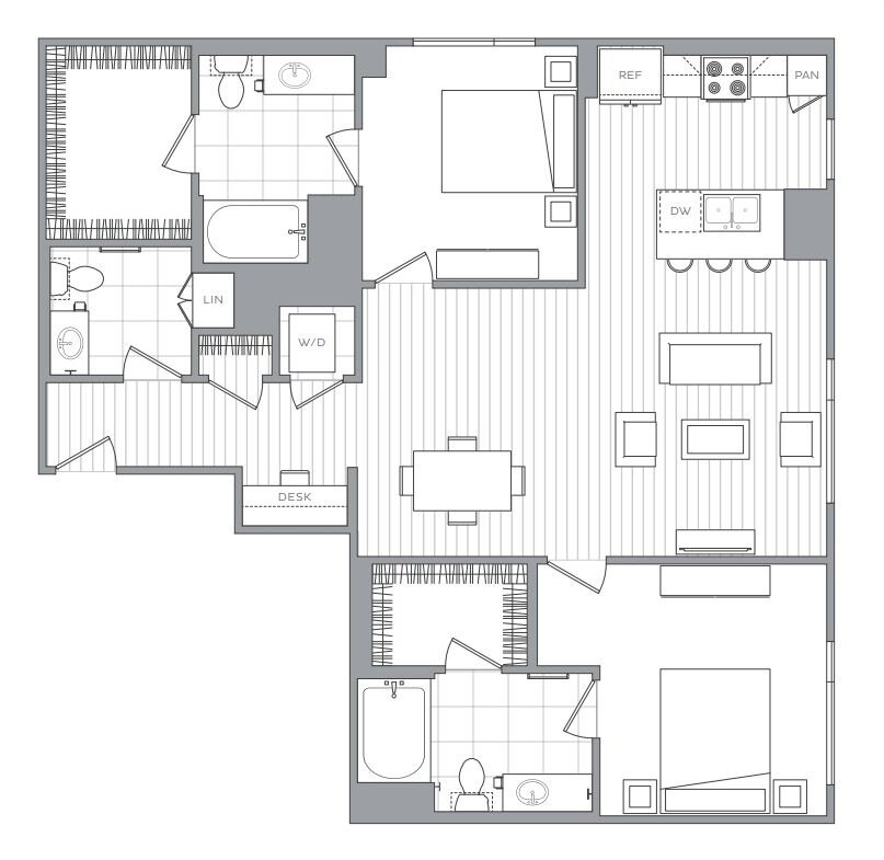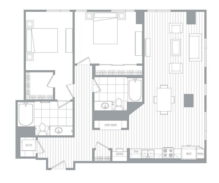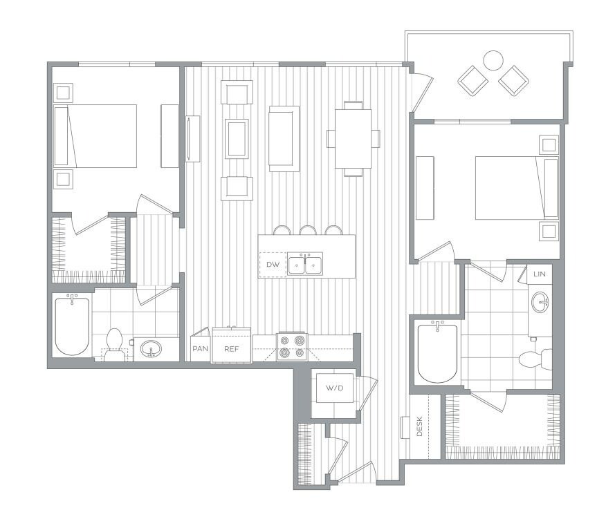 Modelo de apartamento: B32 Dormitorios, 2 Baños, 1044 sq ftDisponible Ahora![]()