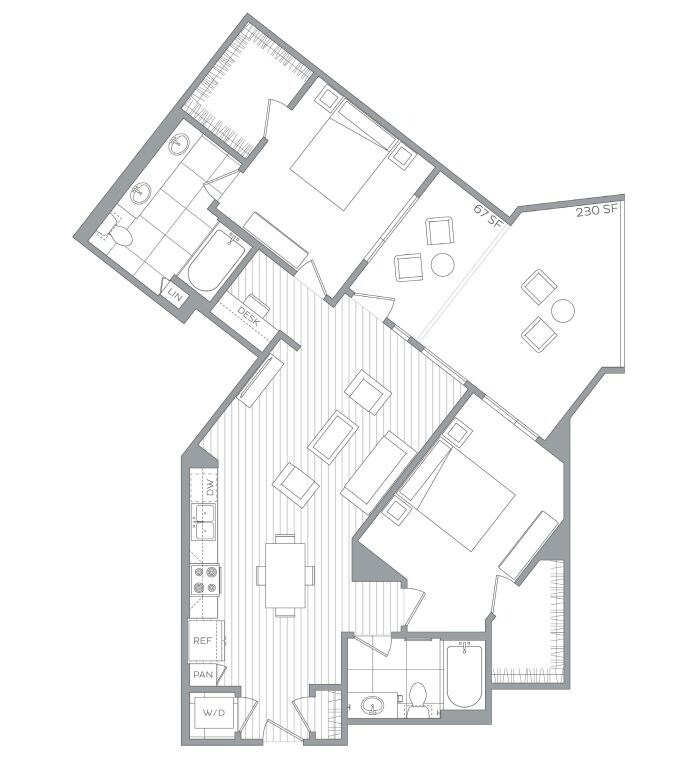 1 Dormitorio, 1 Baño, 669 pies²Galería del Modelo