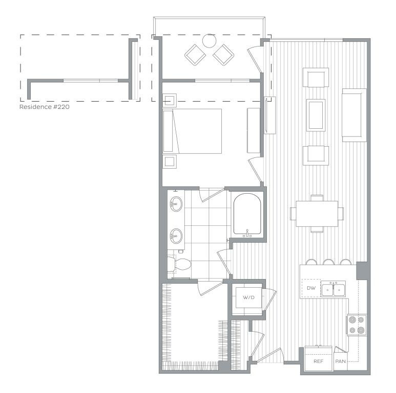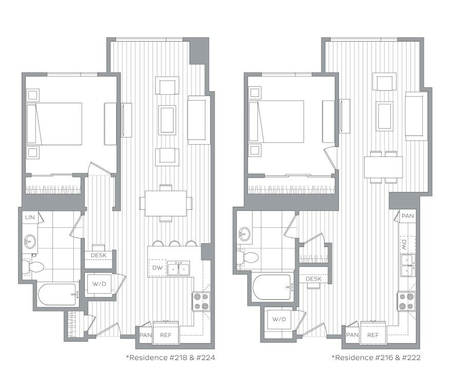 1 Dormitorio, 1 Baño, 764-773 pies²Galería del Modelo