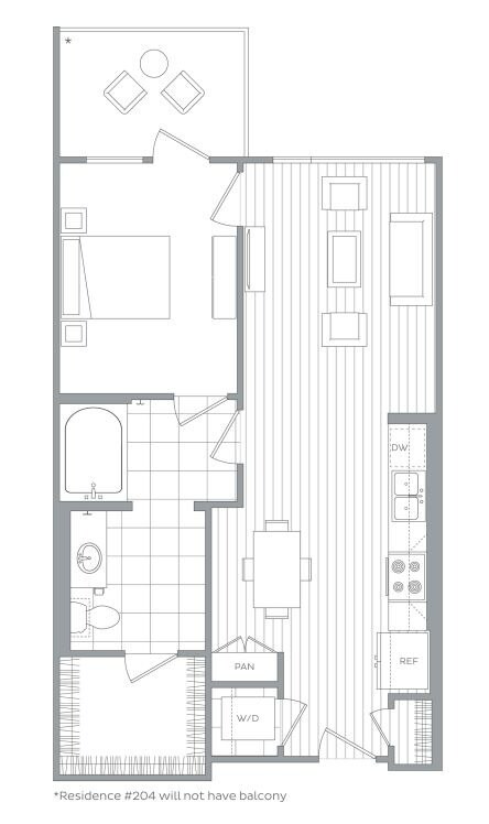Estudio, 1 Baño, 613 pies²El más grandeEsta opción tiene las unidades más grandes para este modeloGalería del Modelo