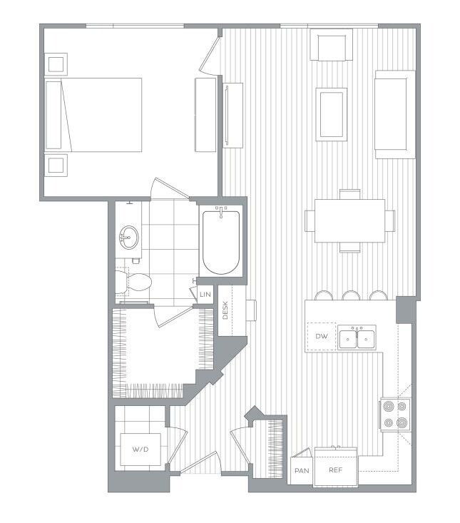 1 Dormitorio, 1 Baño, 807-808 pies²Disponible Dec 5Galería del Modelo