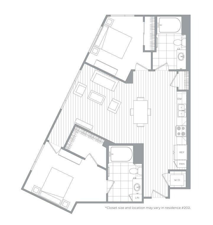 1 Dormitorio, 1 Baño, 812-823 pies²El más grandeEsta opción tiene las unidades más grandes para este modeloGalería del Modelo