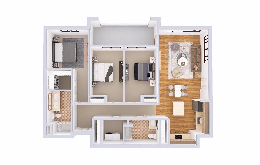 1 Dormitorio, 1 Baño, 775-779 pies²Disponible AhoraEl más grandeEsta opción tiene las unidades más grandes para este modeloGalería del Modelo