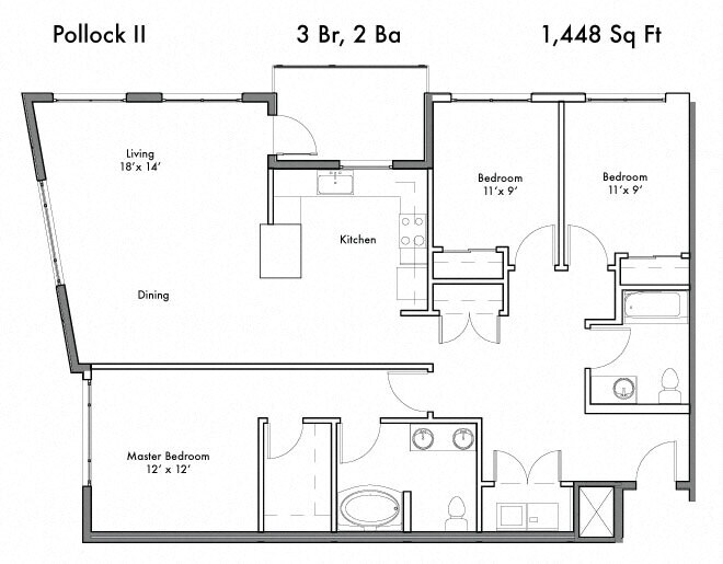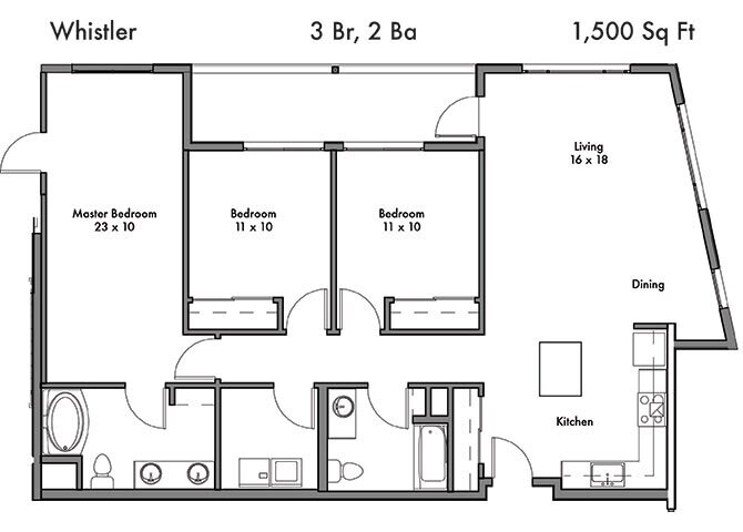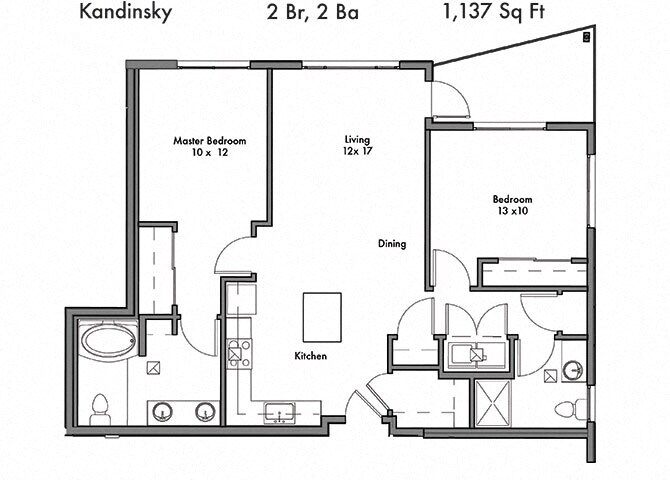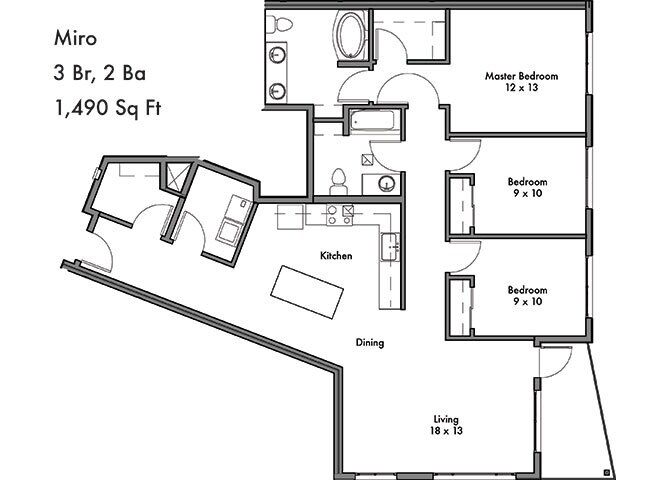 Modelo de apartamento: DonatelloLlame para Precios1 Dormitorio, 1 Baño, 764 sq ftNo Disponible![]()