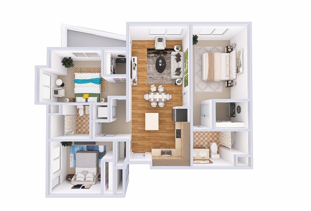 Modelo de apartamento: MonetDesde $2,0501 Dormitorio, 1 Baño, 763-779 sq ftDisponible Ahora![]()
