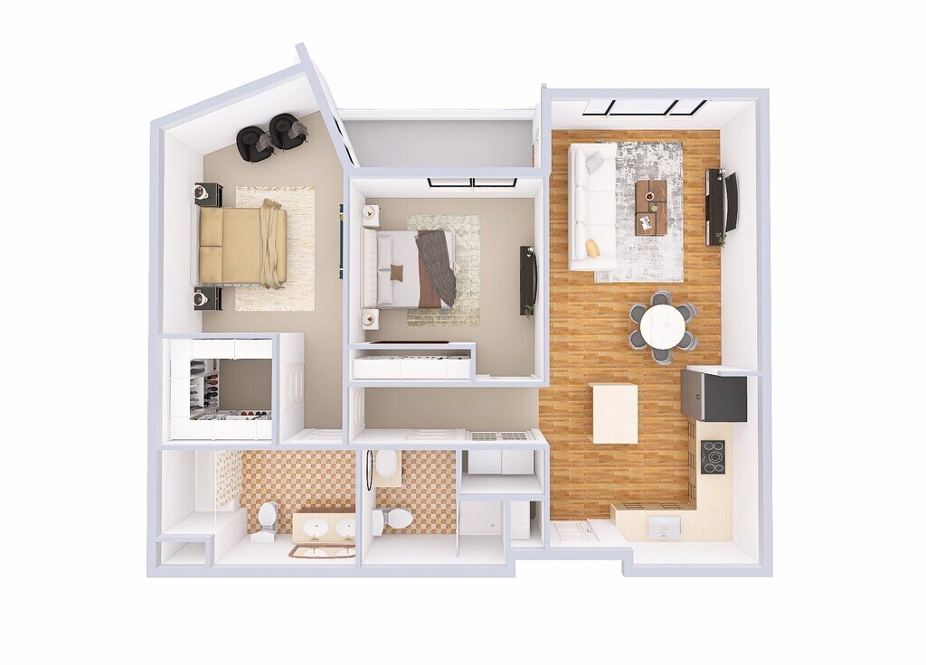1 Dormitorio, 1 Baño, 775-779 pies²Disponible AhoraGalería del Modelo