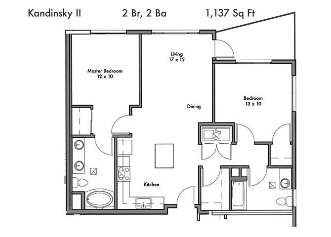 Modelo de apartamento: MonetDesde $1,9901 Dormitorio, 1 Baño, 775-779 sq ftDisponible Ahora![]()