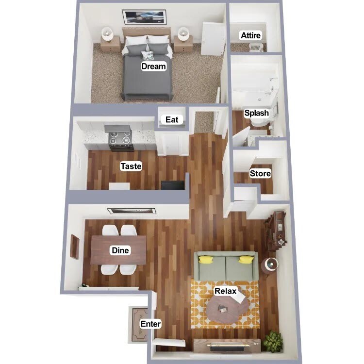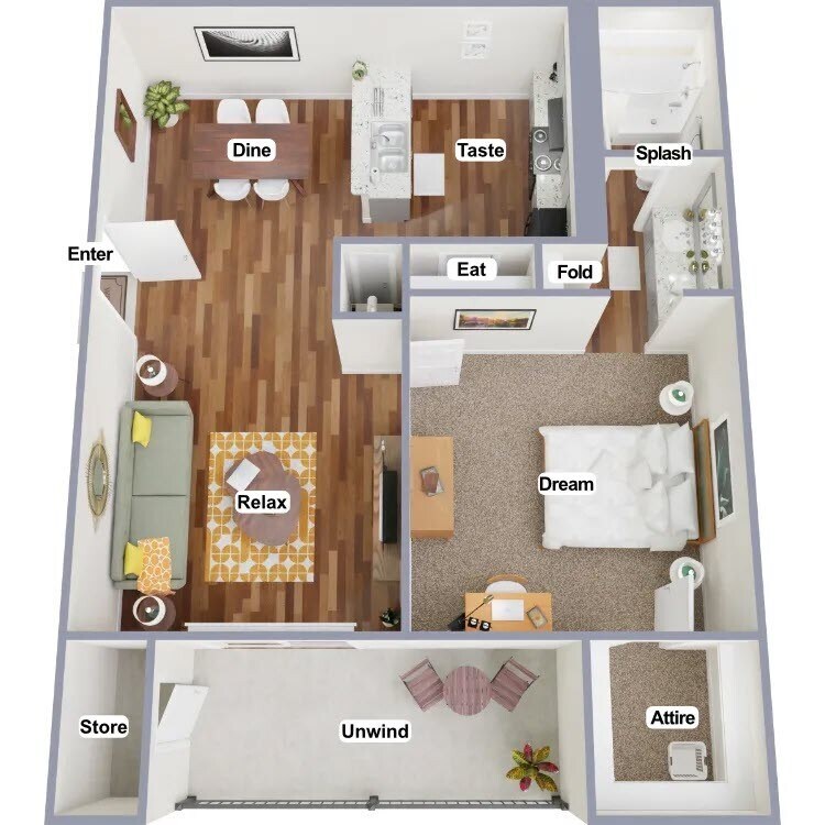 1 Dormitorio, 1 Baño, 649-663 pies²Disponible AhoraGalería del Modelo