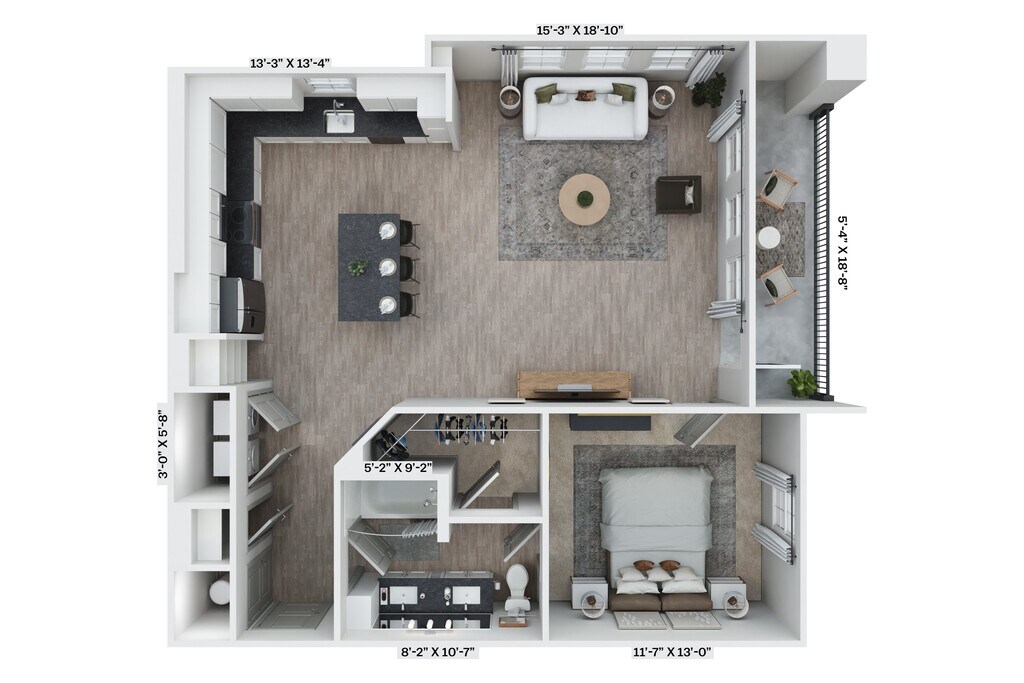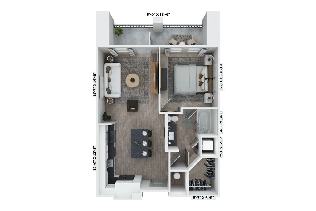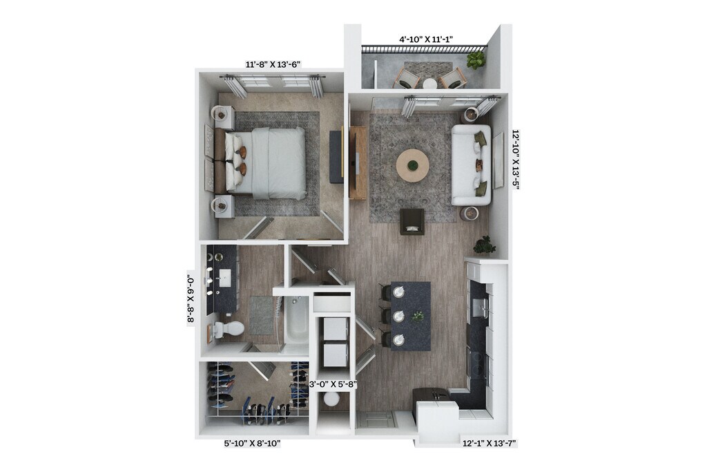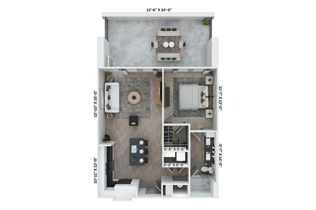 1 Dormitorio, 1 Baño, 805 pies²Disponible AhoraGalería del Modelo