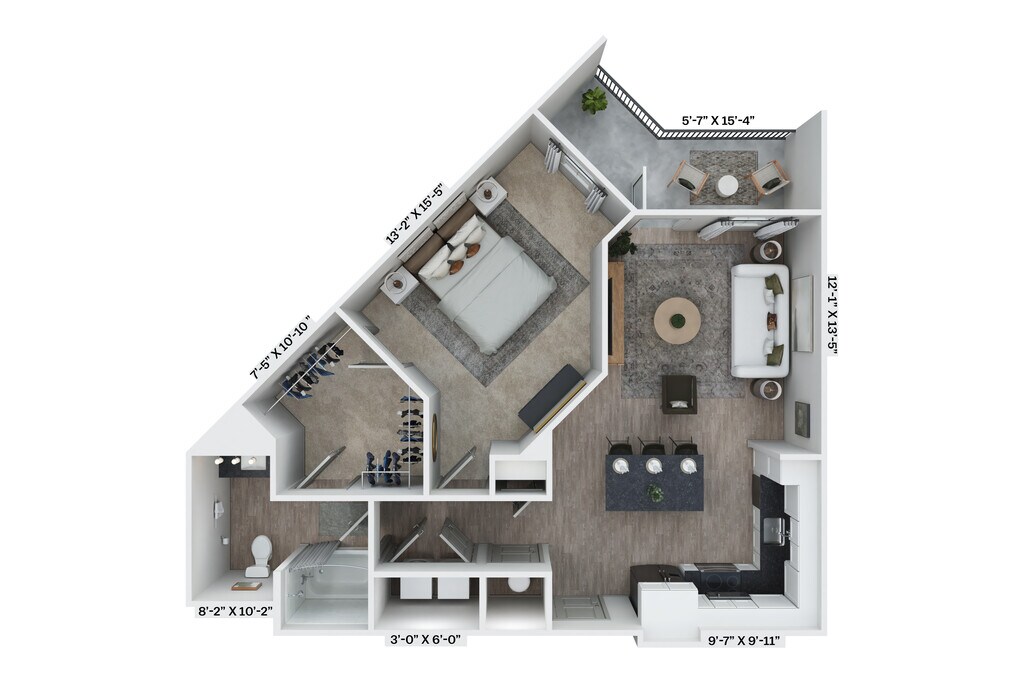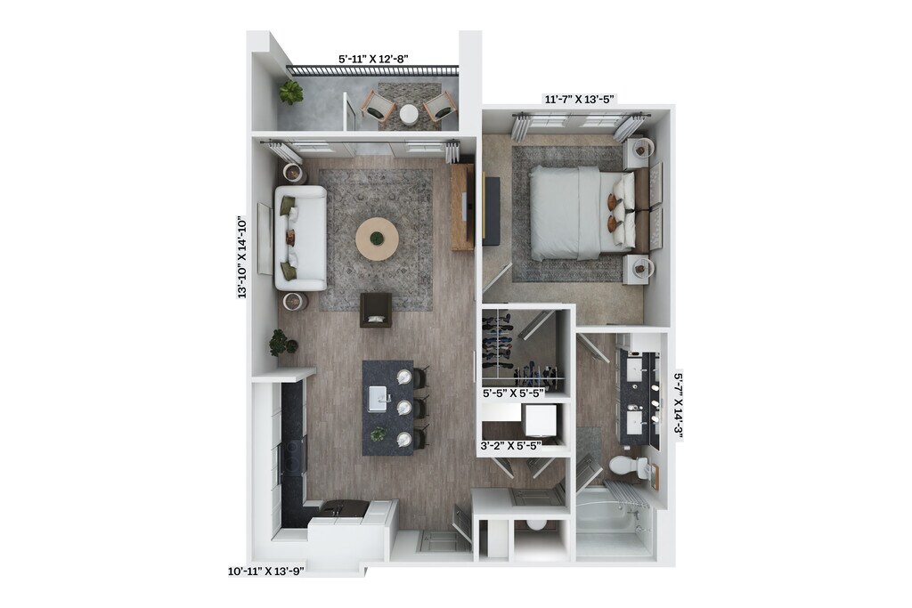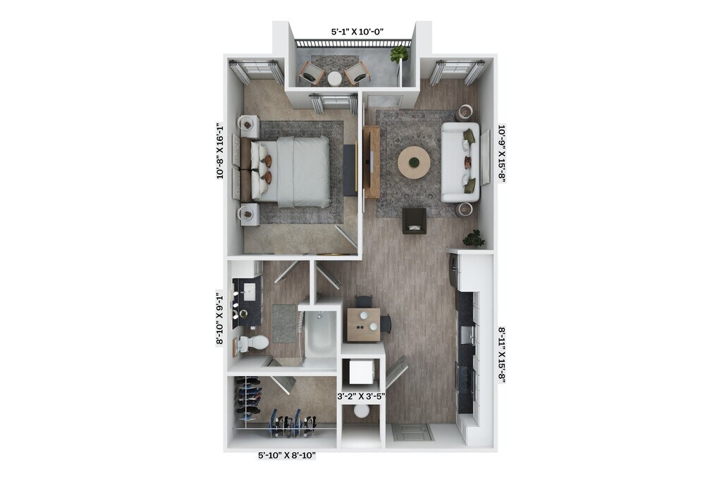 Modelo de apartamento: 1BR 1BA (755 SF) - ADesde $2,0701 Dormitorio, 1 Baño, 767 sq ftDisponible Ahora![]()