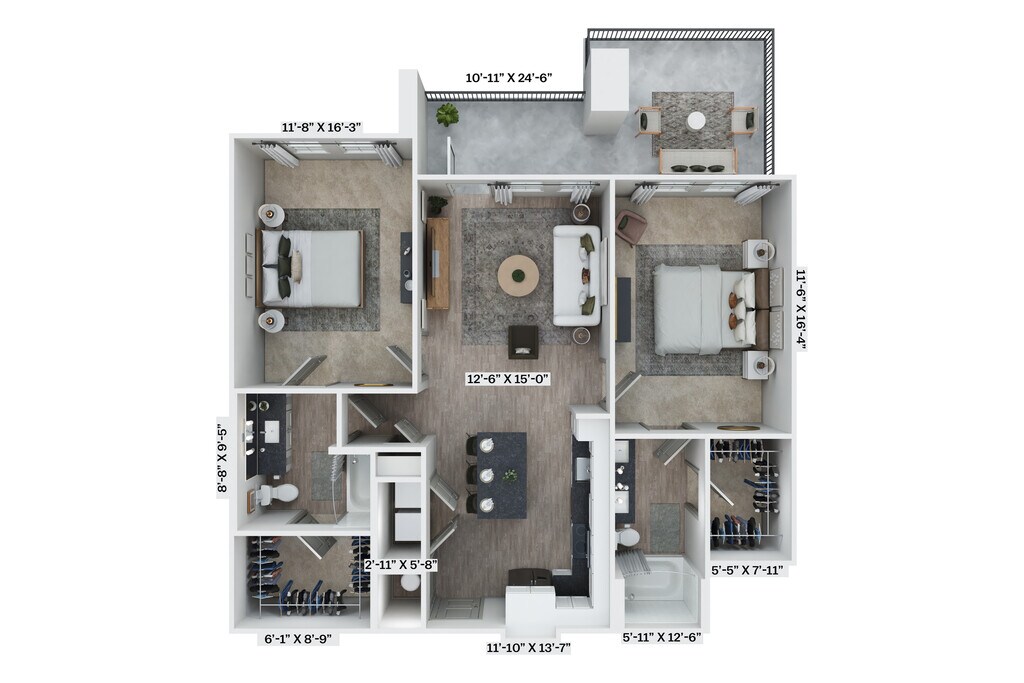 Modelo de apartamento: A2Llame para Precios1 Dormitorio, 1 Baño, 985 sq ftNo Disponible![]()