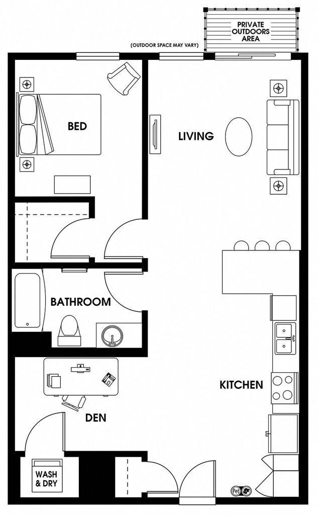 One Bedroom Den AD1 - Plano 1 Unidad de apartamento: B409Modelo de apartamento: One Bedroom Den AD1$2,2961 Dormitorio, 1 Baño, 735 sq ftDisponible AhoraOne Bedroom A8