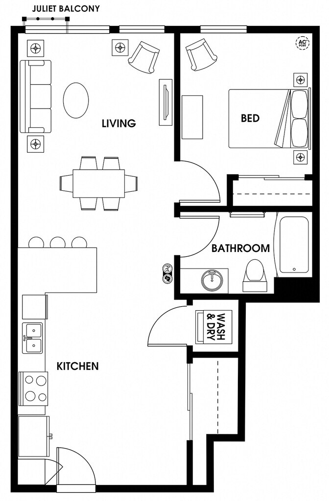 1 Dormitorio, 1 Baño, 709 pies²Disponible AhoraGalería del Modelo
