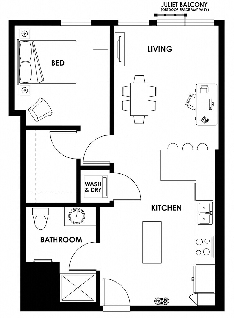 1 Dormitorio, 1 Baño, 735 pies²Disponible AhoraGalería del Modelo