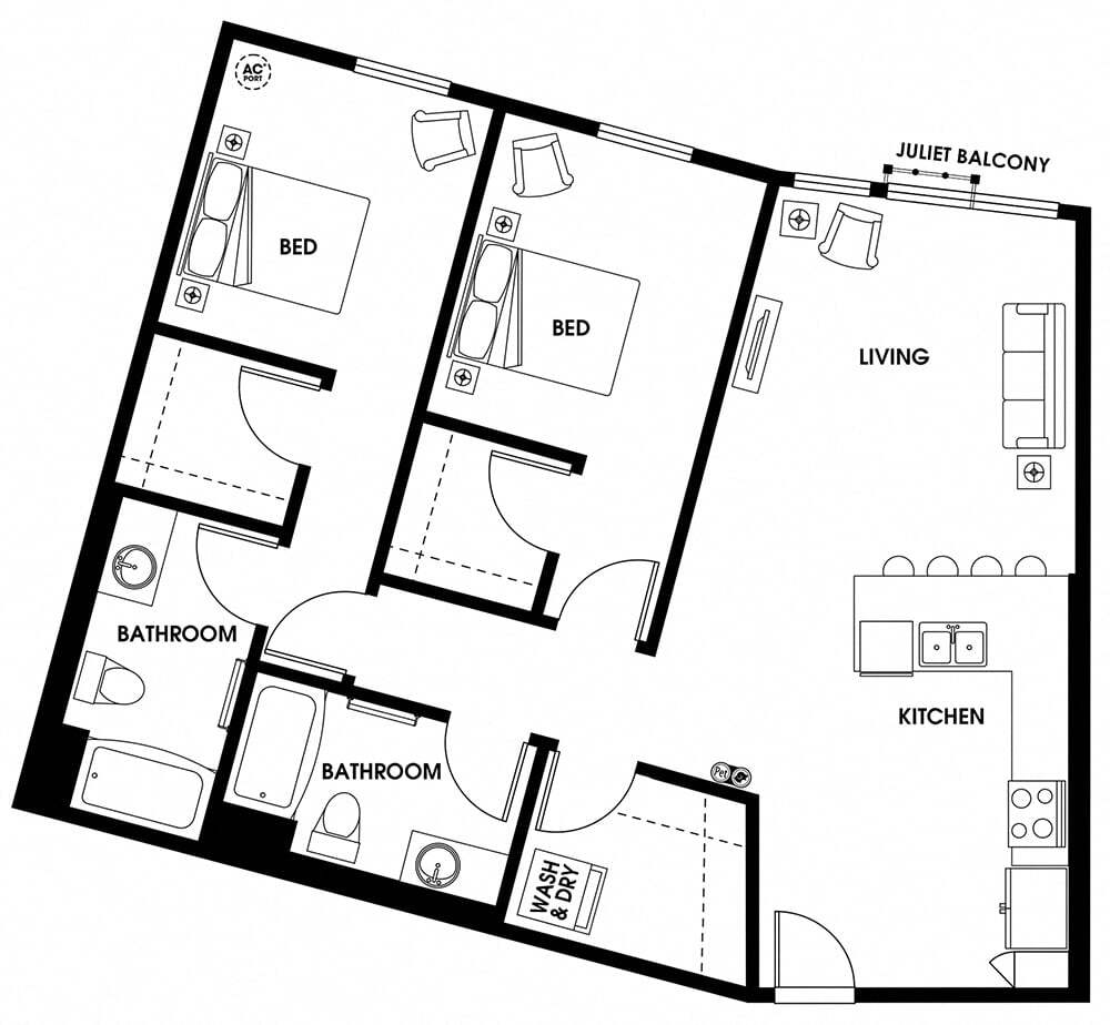 Micro Flat M1 - Plano 1 Unidad de apartamento: A106Modelo de apartamento: Micro Flat M1$1,699Estudio, 1 Baño, 315 sq ftDisponible Ahora$1,799