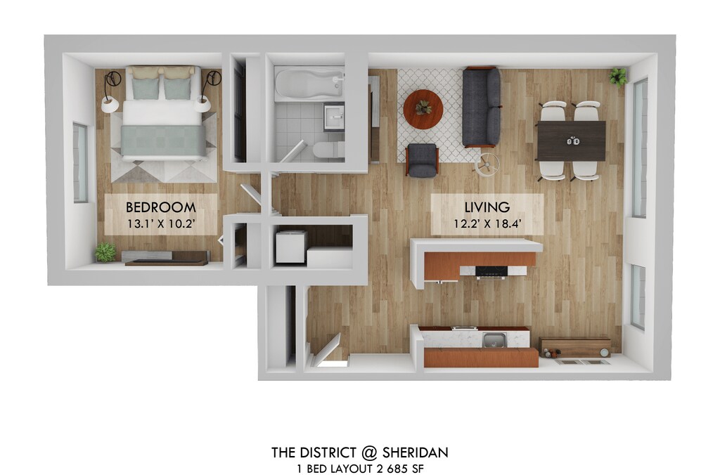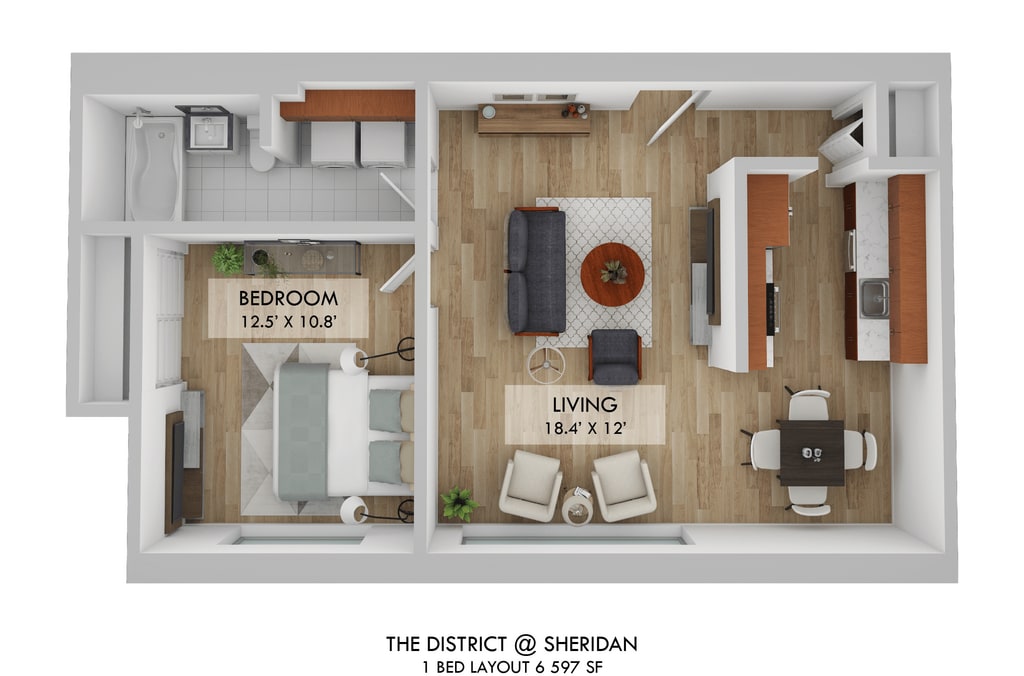 District @ Sheridan - 5536 N Sheridan Rd ofrece apartamentos de Estudio a 2 Dormitorios desde $1,422 con 440–900 pies cuadrados. Aquí está el precio actual y la disponibilidad: