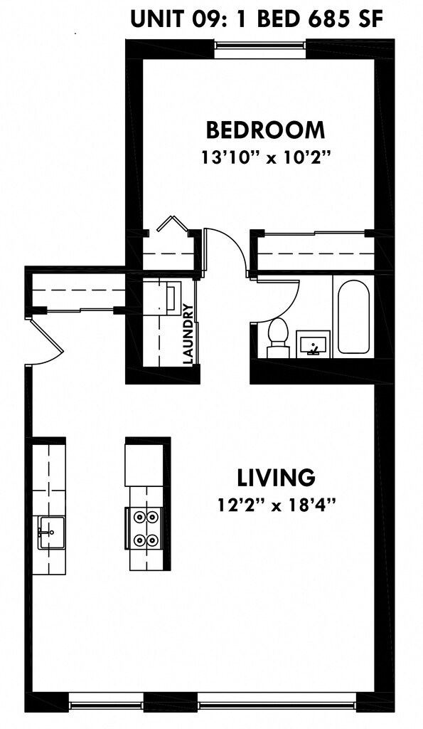 1 Dormitorio, 1 Baño, 750 pies²Disponible AhoraGalería del Modelo