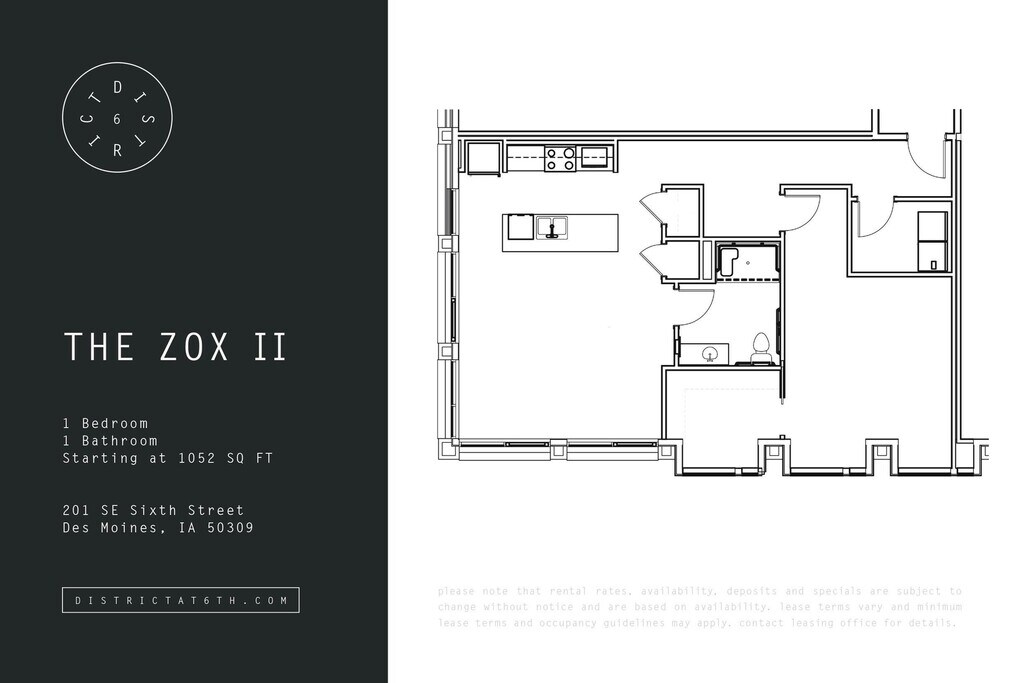 Zox II - Plano 6 Unidad de apartamento: A-219Modelo de apartamento: Zox IIDesde $1,6281 Dormitorio, 1 Baño, 1052 sq ftDisponible AhoraHalston
