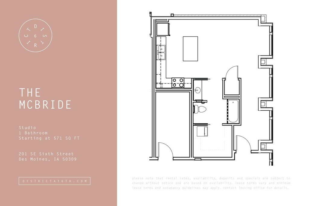 Modelo de apartamento: McBrideLlame para PreciosEstudio, 1 Baño, 571 sq ftNo Disponible![]()