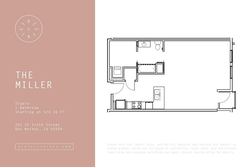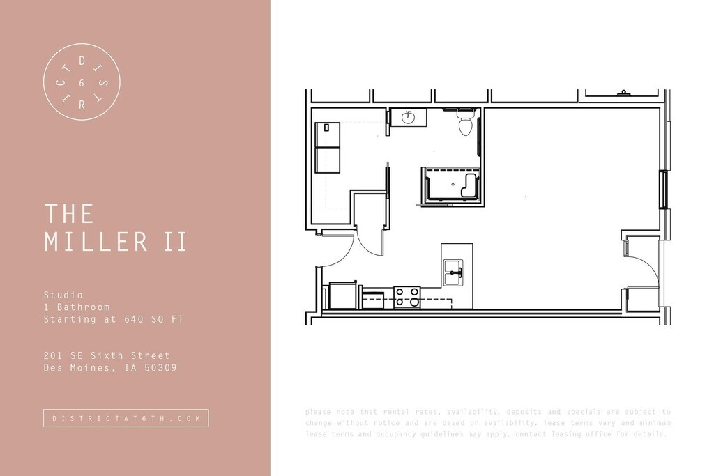 Modelo de apartamento: Miller IILlame para PreciosEstudio, 1 Baño, 669 sq ftNo Disponible![]()