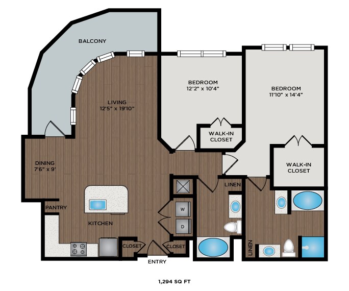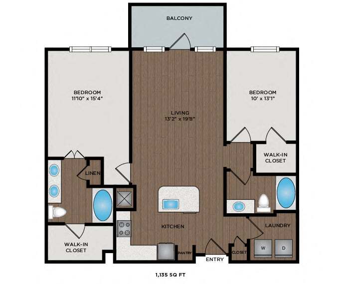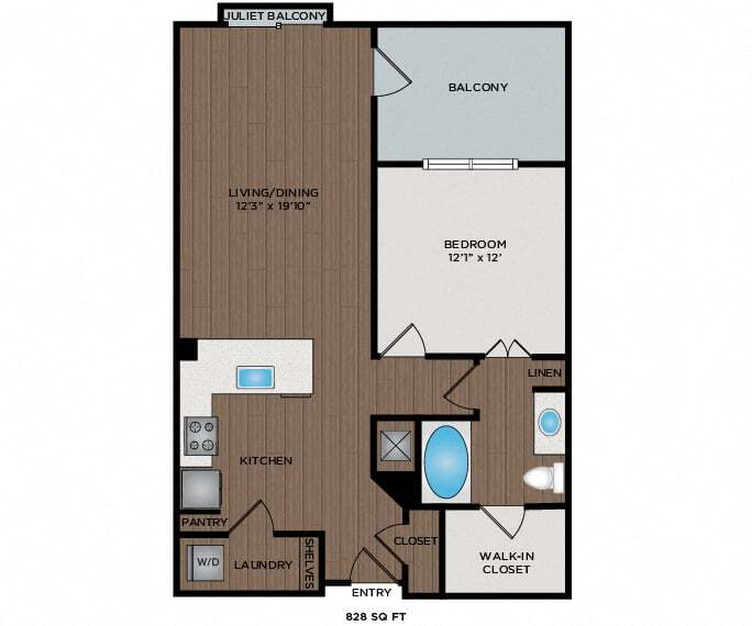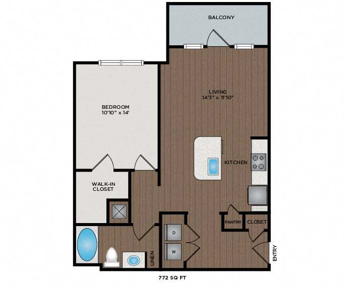 1 Dormitorio, 1 Baño, 828-841 pies²Disponible February 10, 2026El más grandeEsta opción tiene las unidades más grandes para este modeloGalería del Modelo