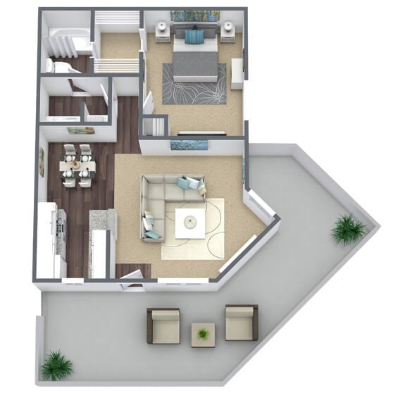 Modelo de apartamento: A1 - 1 Bed | 1 BathDesde $9421 Dormitorio, 1 Baño, 624 sq ftDisponible Ahora![]()