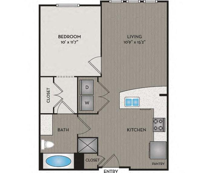 Estudio, 1 Baño, 569-586 pies²Precio Mensual TotalDisponible AhoraGalería del Modelo