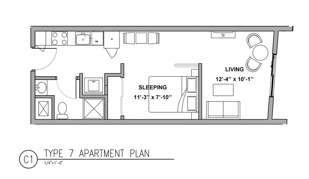 Estudio, 1 Baño, 374 pies²Disponible AhoraGalería del Modelo