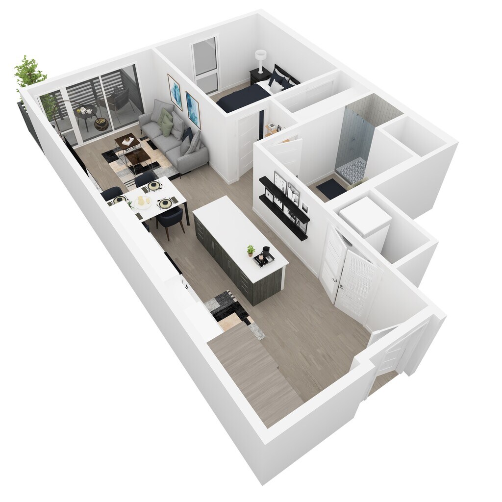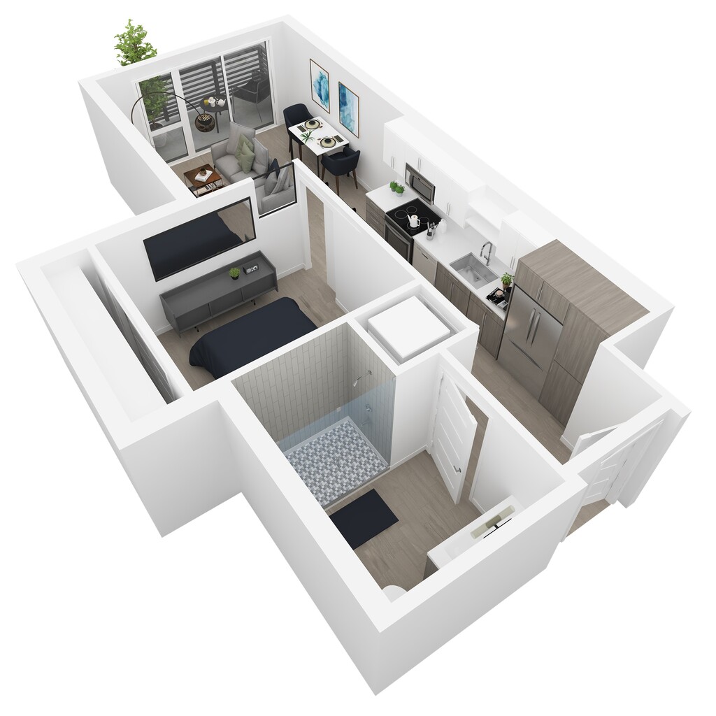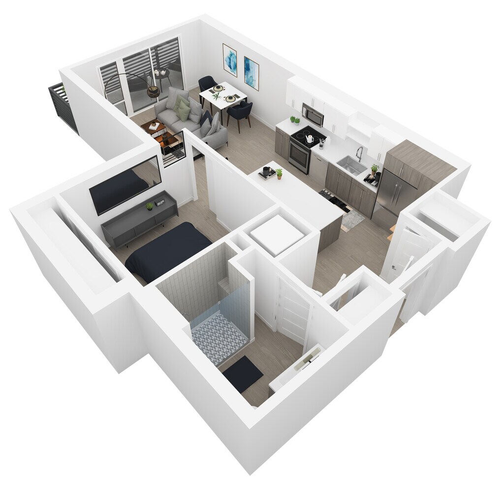 1 Dormitorio, 1 Baño, 718 pies²El más grandeEsta opción tiene las unidades más grandes para este modeloGalería del Modelo
