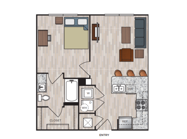 1 Dormitorio, 1 Baño, 637 pies²Disponible AhoraGalería del Modelo