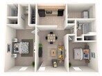 Modelo de apartamento: 2 Bed 1 BathDesde $7702 Dormitorios, 1 Baño, 864 sq ftNo Disponible2 Bed 1 Bath - Plano 1 2 Bed 2 Bath