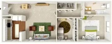 Modelo de apartamento: 2 Bedroom - Large$1,5702 Dormitorios, 1 Baño, 900 sq ftDisponible Ahora![]()